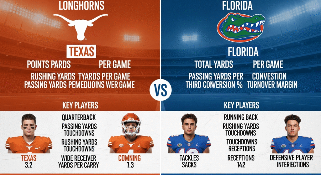 The clash between the Texas Longhorns Football vs Florida Gators Football Match Player Stats team is always a headline matchup in college football. Both programs are rich in tradition, athletic talent, and passionate fan bases. When these two teams meet, the spotlight naturally falls on player stats, individual performances, and how those numbers influence the final outcome of the game. This article provides a detailed breakdown of the match, focusing on offensive, defensive, and special teams player statistics, along with key takeaways from the performance of both sides.